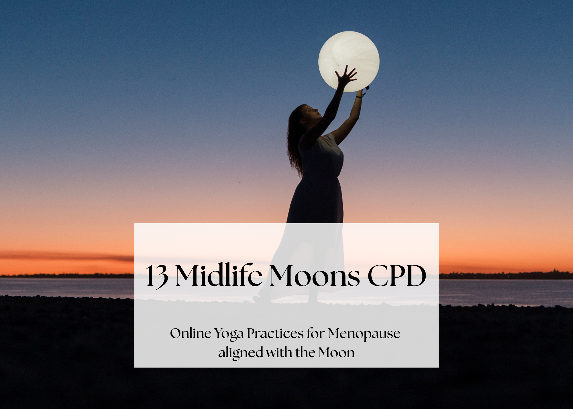 Whether you’re a yoga teacher seeking personal growth or wish to learn something new to support the women that you teach, “13 Midlife Moons” invites you to be part of this transformative process. You can use the hours of this course (20 hours minimum) as part of your CPD for Yoga Alliance Professionals. Each New Moon, you will receive a workbook that is full of information and guidance, which you can use in your own teachings. Then, each  Full Moon, there will be a sequence that you are welcome to use in your classes. The monthly topics are an excellent way to update your knowledge and bring fresh ideas to your teaching without committing to a in-depth course.